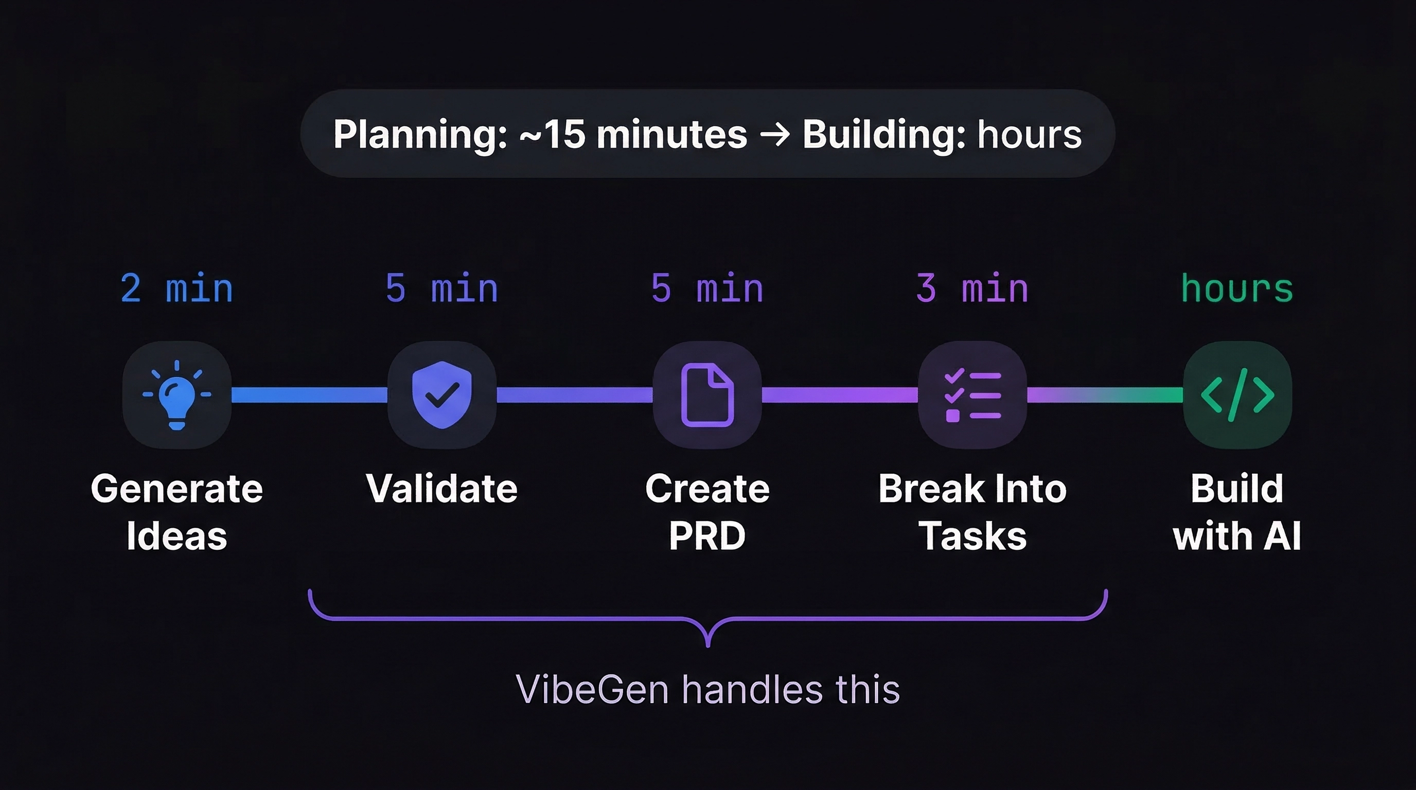 VibeGen isn't just another idea generator — it's a complete planning pipeline designed specifically for vibe coders and indie hackers.