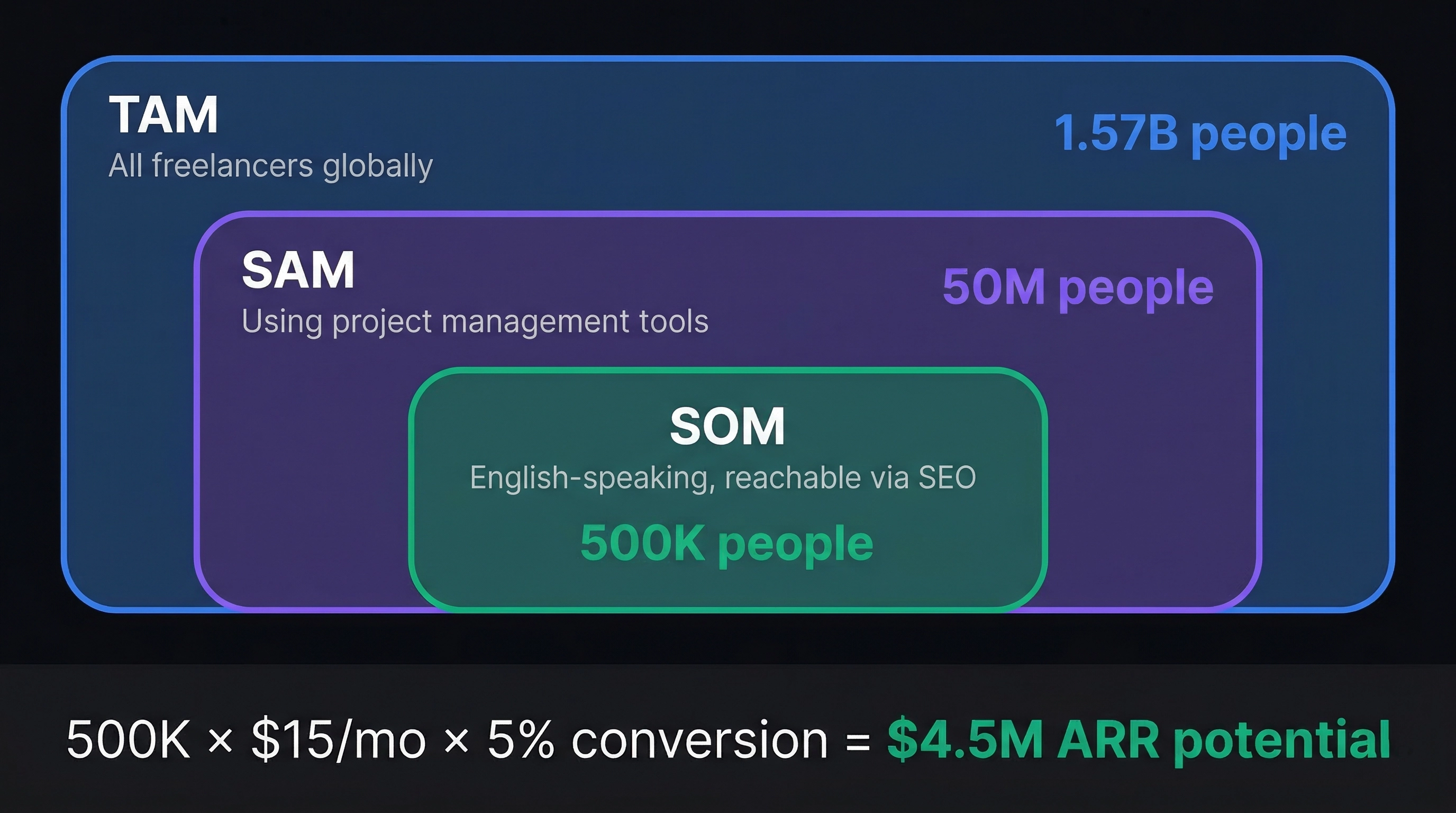 | SAM (Serviceable Addressable Market) | The slice you can realistically reach |